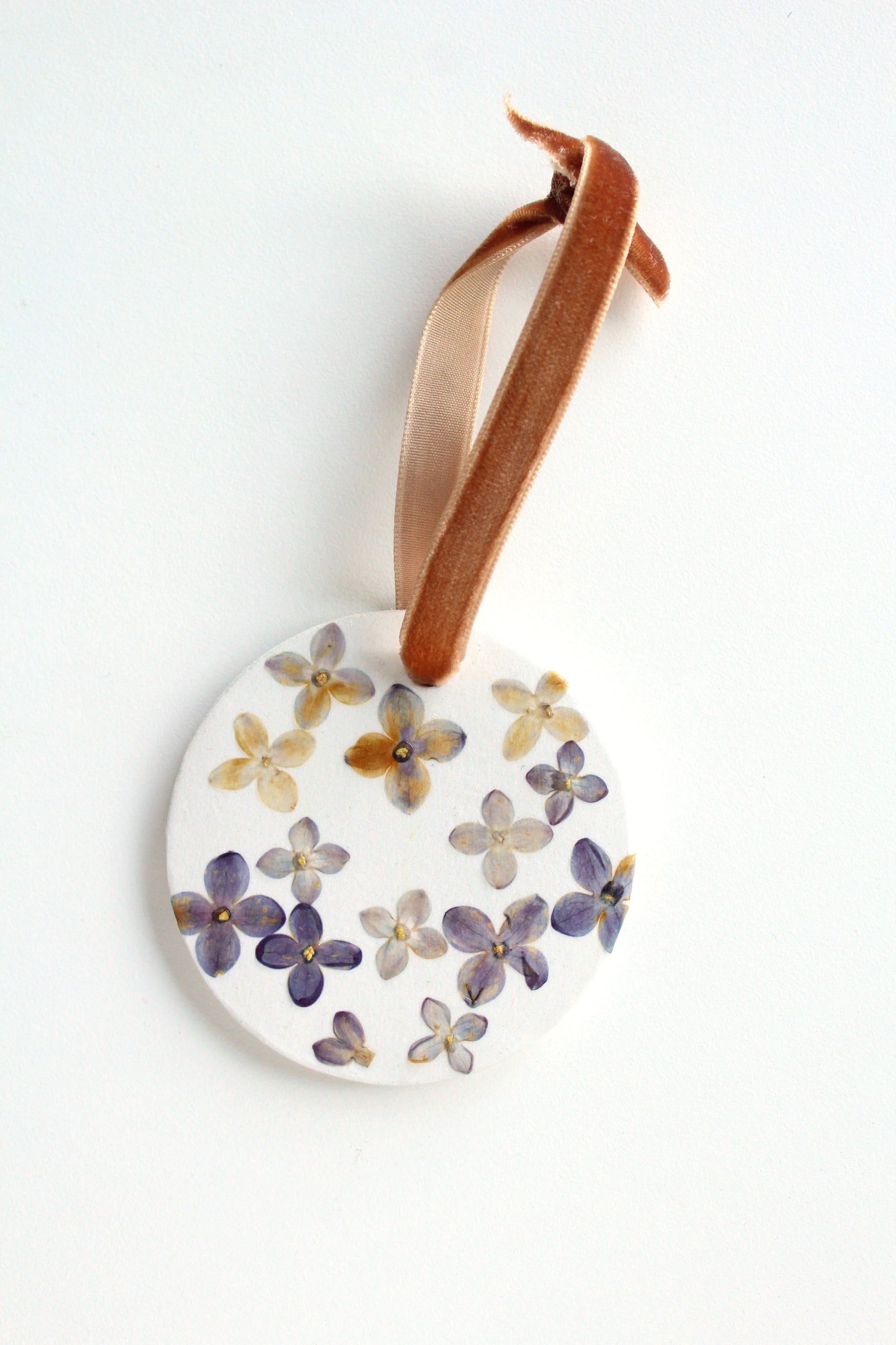 Material: Real Pressed Flowers, Ceramic, Velvet Ribbon